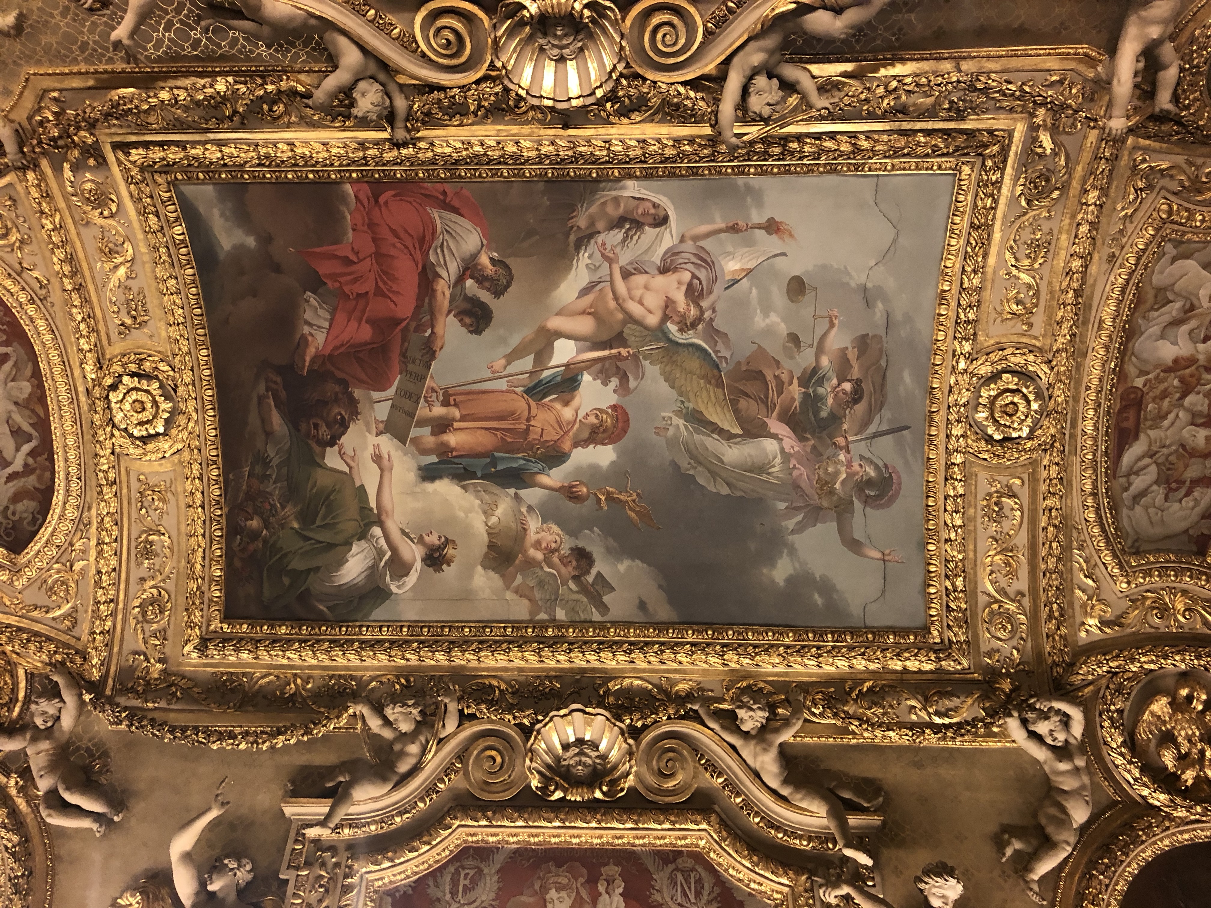 It was not the painting of Napoleon Bonaparte, or the picture of Joan of Arc, or the Sphinxes, or the Greek sculptures of the Winged Victory of Samothrace or Aphrodite. No, for me the most spectacular pieces of art were on the ceilings.