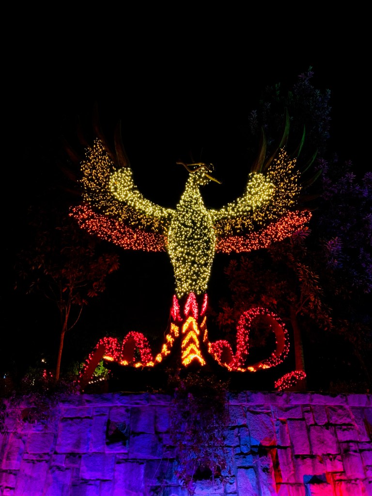 With your drink in tow, you’ll want to stop first at the Singing Lights attraction. The mesmerizing lights and music will captivate you. Though tempting to spend the entire night there, other attractions await just follow the bright and colorful lights on the pathway.