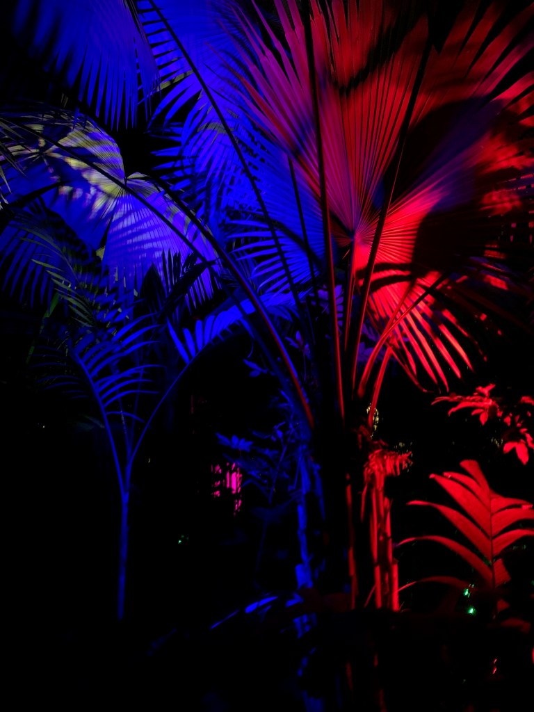 After your very sweet treat, visit the the greenhouse but take your coat off before you enter. The humidity will keep you warm for a short period in the cool night.
